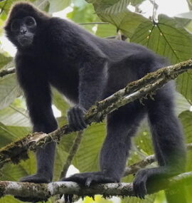 A highly agile primate and essential seed disperser. Its population is declining due to deforestation and hunting pressure. It depends on large tracts of continuous forest and plays a vital role in maintaining forest composition.